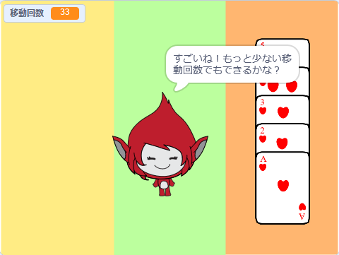 Scratchの作成です。ハノイの塔をヒントにトランプゲームにしてみました。